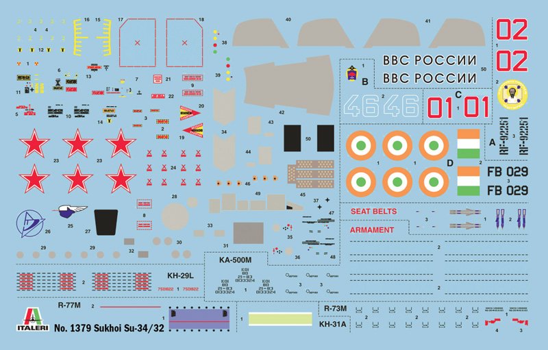 SUPER DECALQUE PARA 4 VERSÕES O Sukhoi Su-34 OTAN Fullback é uma aeronave bimotora de ataque e interdição produzida desde meados da década de 1990 para a Força Aérea Russa.