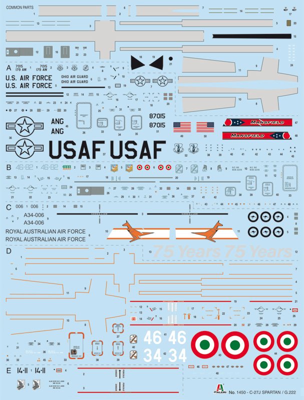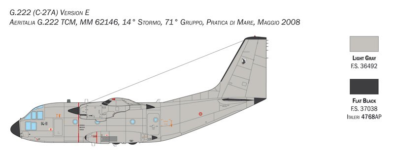 SUPER DECALQUES PARA 5 VERSÕES – INSTRUÇÕES DE CORES O avião de transporte bimotor Aeritalia G-222 foi projetado no final da década de 1960 pelo famoso engenheiro. Giuseppe Gabrielli, projetista de caças como o G.55 e o G. 91 e nasceu para
