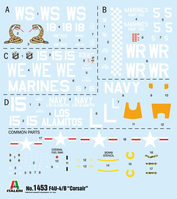 SUPER DECALQUE PARA 4 VERSÕES – INSTRUÇÕES DE CORES FIGURA NÃO INCLUÍDA O F-4U Corsair foi desenvolvido e produzido pela empresa aeronáutica Vought para ser utilizado como caça embarcado em porta-aviões norte-americanos.
