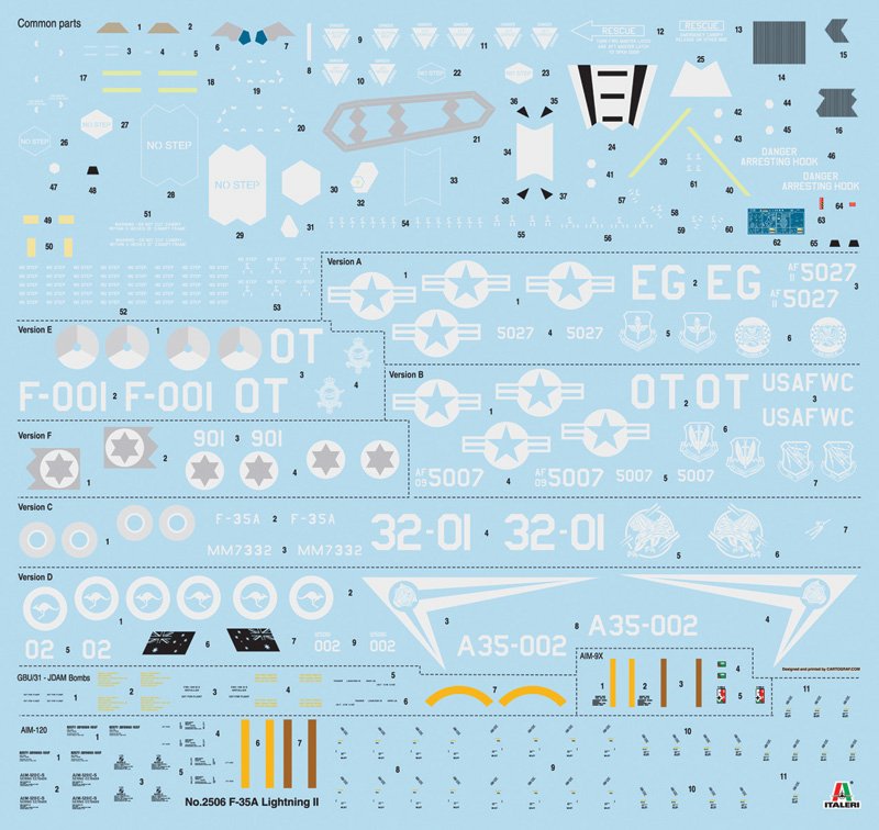 MOLDES 100% NOVOS – SUPER DECALQUES PARA 6 VERSÕES – FOTO-ETCHED – INSTRUÇÕES DE CORES E NOVA MÁSCARA ADESIVA Versão CTOL (Decolagem e Pouso Convencional) O programa JSF Joint Strike Fighter foi criado para