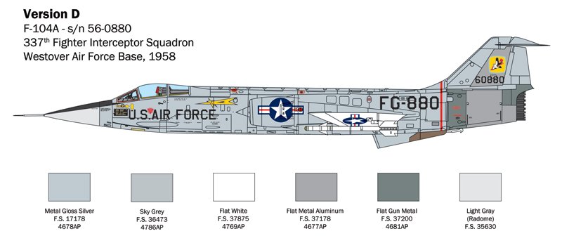 DETALHES DAS LINHAS E REBITES FINAMENTE GRAVADOS – MÚLTIPLOS DETALHES, COCKPIT E EQUIPAMENTOS AVIONICOS COM POSSIBILIDADE DE ABERTO/FECHADO – COMPARTIMENTO DE Pistola M61 DETALHADO – FREIOS A AR ABERTOS OU FECHADOS – FOTO-ETCH INCLUÍDO – 316 PEÇAS – FOLHAS DE DECALQUES PARA 6 VERSÕES – INSTRUÇÕES COM PRO FIOS A CORES O caça-interceptador Lockheed F-104 Starfighter foi, sem dúvida,