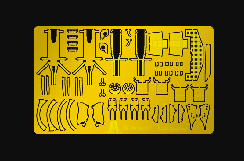 PEÇAS NOVAS – 350 peças – photo-etched detalhado – Motor RB199 removível com carrinho de suporte – Flaps e Slats estendidos ou retraídos – Ailerons móveis – Radome de abertura e radar altamente detalhado – Reversores de empuxo abertos ou fechados – Freios aerodinâmicos abertos ou fechados – Rodas de borracha –