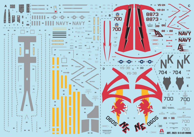 SUPER DECALQUE PARA 3 VERSÕES FIGURA NÃO INCLUÍDA O S-3 Viking é a aeronave anti-submarino padrão da Marinha dos EUA para uso embarcado desde meados da década de 1970.