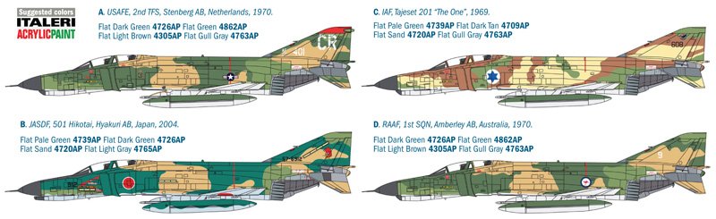SUPER DECALQUES PARA 4 VERSÕES Projetado pela empresa americana McDonnell Douglas e entrou em serviço na década de 60, o caça-bombardeiro supersônico de dois lugares F-4 Phantom II para todos os climas está entre as
