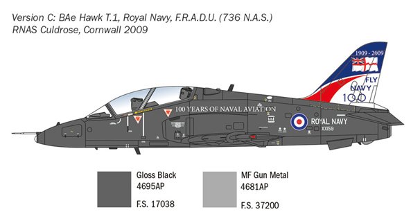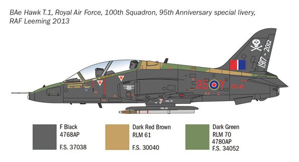 SUPER DECALQUES PARA 4 VERSÕES – INSTRUÇÕES DE CORES FIGURA NÃO INCLUÍDA O Hawk T Mk 1 foi desenvolvido pela Hawker Siddeley, agora absorvida pela BAE Systems, para equipar os departamentos de treinamento avançado da Royal Air Force na segunda metade da década de 1970.