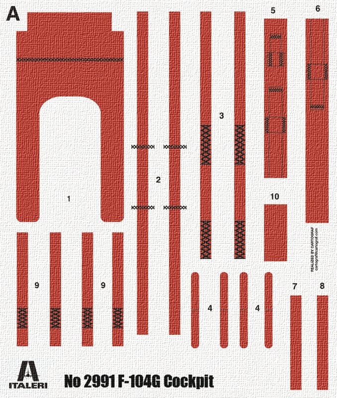 124 peças – controles de cabine F-104 altamente detalhados – Assento ejetável Martin Baker Mk.I Q altamente detalhado – Completo com decalque de cabine – Decalque de tecido falso de acetato – Capacete de piloto com máscara de oxigênio – Viseira de piloto de plástico transparente, visão e tela de radar