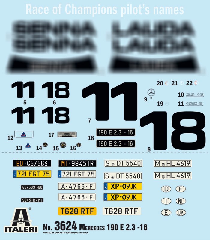 DECALQUE RACE OF CHAMPIONS 1984 – FOLHA DE INSTRUÇÕES DE CORES Apresentado em 1982, representou um ponto de viragem na produção do prestigiado fabricante de automóveis de Estugarda. O 190 era na verdade a versão
