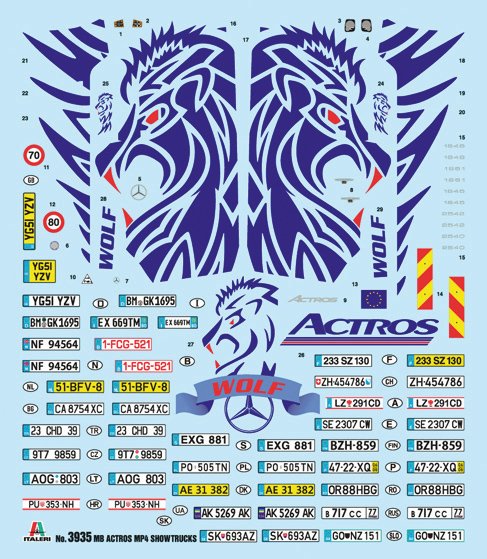 SUPER DECALQUE – INSTRUÇÕES DE CORES – NOVAS PEÇAS CROMADAS Actros é o nome comercial dos caminhões pesados da Mercedes-Benz. A gama Actros foi lançada em 1995 e alcançou