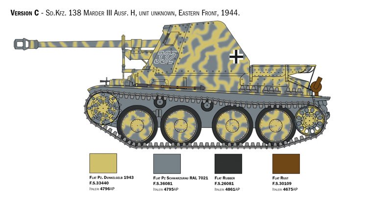 LINK E COMPRIMENTO DAS TRILHAS – DECALQUES PARA 4 VERSÕES – INSTRUÇÕES DE CORES CONTÉM 2 FIGURAS O caça-tanques Sd.Kfz. 138 Marder III foi desenvolvido para o exército alemão com base no