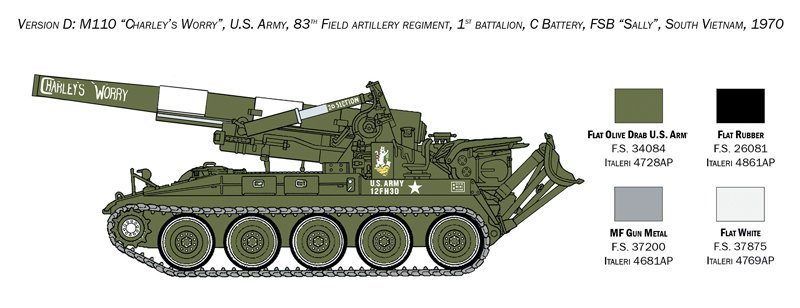 NOVAS ESTEIRAS DE BORRACHA COLÁVEIS – DECALQUES PARA 4 VERSÕES – FOLHA DE INSTRUÇÕES DE CORES Os canhões autopropelidos da série M-110 representaram, por muitos anos, a espinha dorsal da artilharia de campanha dos exércitos americanos e aliados.