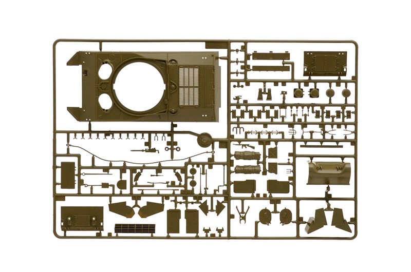 PEÇAS NOVAS – PISTAS DE BORRACHA COLÁVEIS – DECALQUES PARA 4 VERSÕES – INSTRUÇÕES DE CORES O tanque médio M4 Sherman foi sem dúvida o veículo blindado mais difundido e utilizado durante a Segunda Guerra Mundial.