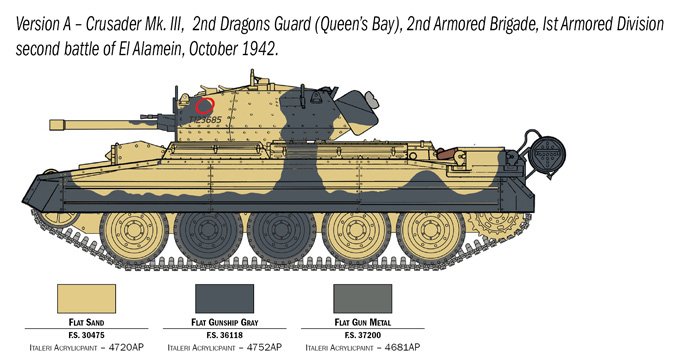 DECALQUES PARA 3 VERSÕES – NOVAS ESTEIRAS DE BORRACHA COLÁVEIS – INSTRUÇÕES DE CORES CONTÉM 9 FIGURAS Projetado no início da Segunda Guerra Mundial, o Crusader foi um dos mais